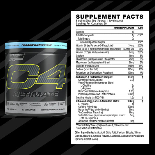 C4 Ultimate Pre Workout Powder - 20 Servings / Frozen Bombsicle